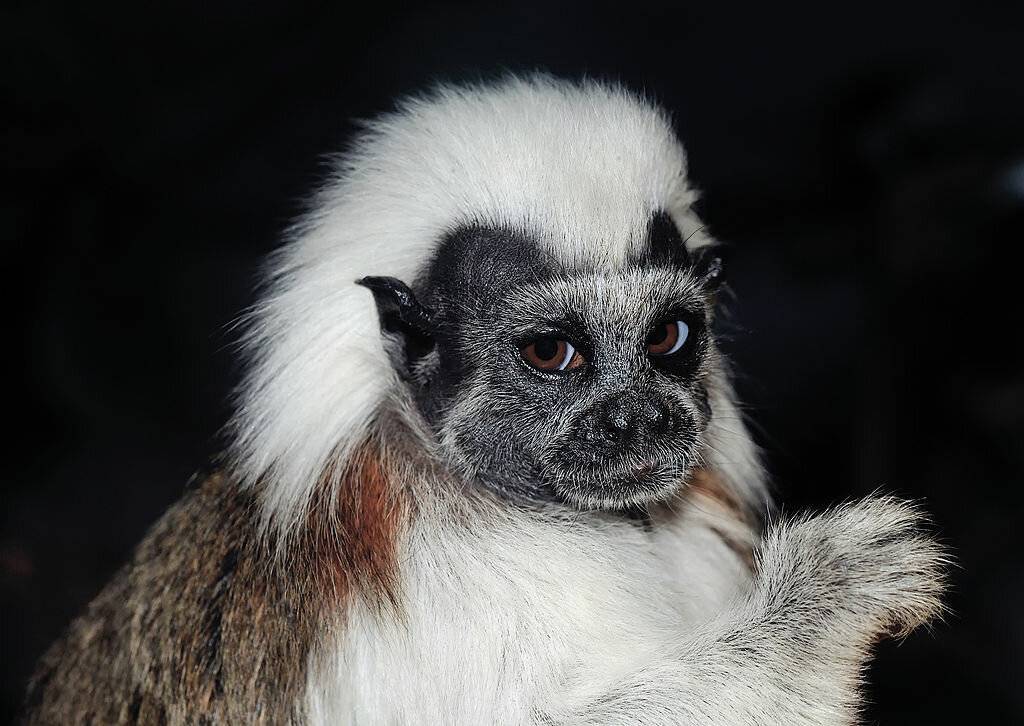 Эдиповы тамарины – крошечные обезьянки из Колумбии, весят всего 400 грамм. В момент опасности они вынуждены поднимать рыжий хвост и демонстрировать половые признаки. Потому что их умилительная черная мордочка в обрамлении взъерошенной серой гривы способна вызвать только смех.