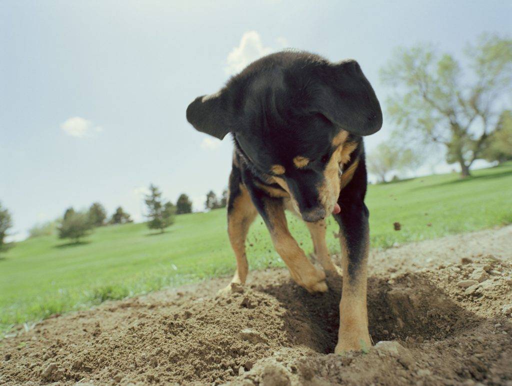 На улице пса удерживают подальше от мусорных баков, не дают поднимать с земли палки или камни, рыть ямы.