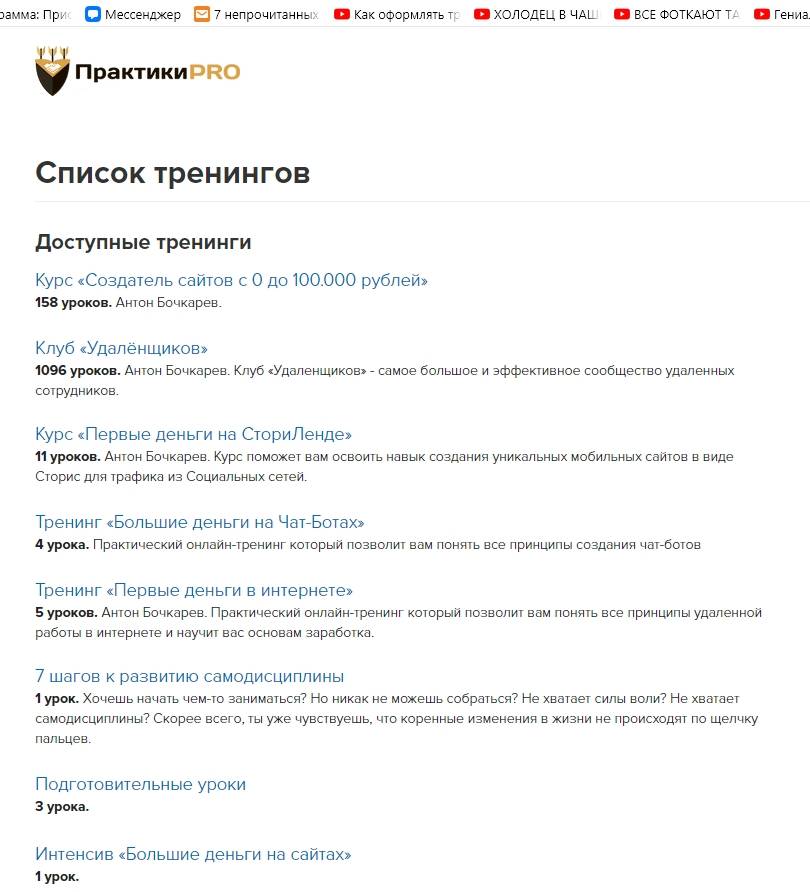 Список тренингов Клуба Удаленщиков