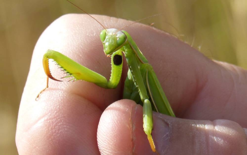 Вообще, в руки богомола без особой надобности брать не стоит. Лучше подставьте ладонь и позвольте насекомому самому на нее забраться (можно слегка подтолкнуть).