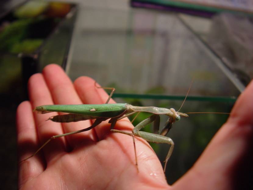 Поить насекомых не надо, они получают все необходимое из еды. В дикой природе маленькие виды богомолов вытесняются более сильными и крупными, иногда может происходить полное истребление вида на определенной территории.
