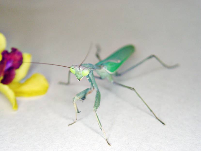 Как уже было сказано ранее, богомолы предпочитают влажную среду температурой от 20 до 30 градусов по Цельсию. Питаются они другими насекомыми. В продаже в зоомагазинах можно найти различных жучков, муравьев, которые станут живой пищей для богомола. Кормление должно быть регулярным, однако поилка богомолам не нужна.