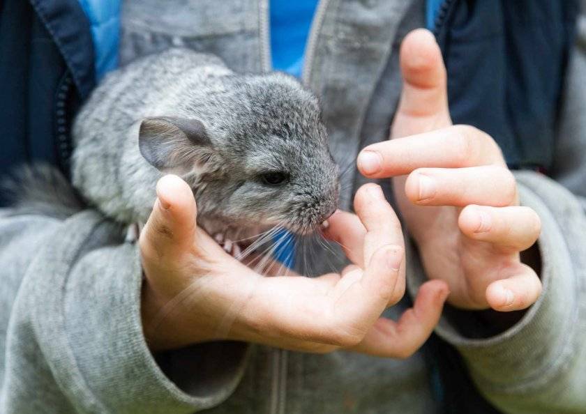 Прикасаться к шиншилле нужно в медицинских перчатках. После контакта хорошо мыть руки и, возможно, поменять одежду.