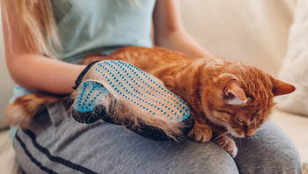 - Нужно погладить кота рукавицей или провести по шерсти гребешком с редкими зубчиками.