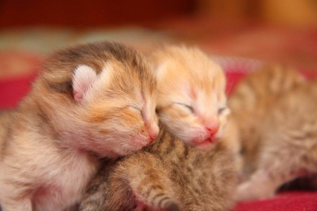Новорождённый малыш нуждается в тепле, регулярном питании и возможности испражняться. Первый месяц жизни котята будут спать и вообще существовать в специально сооруженном гнезде, приготовленном заранее.