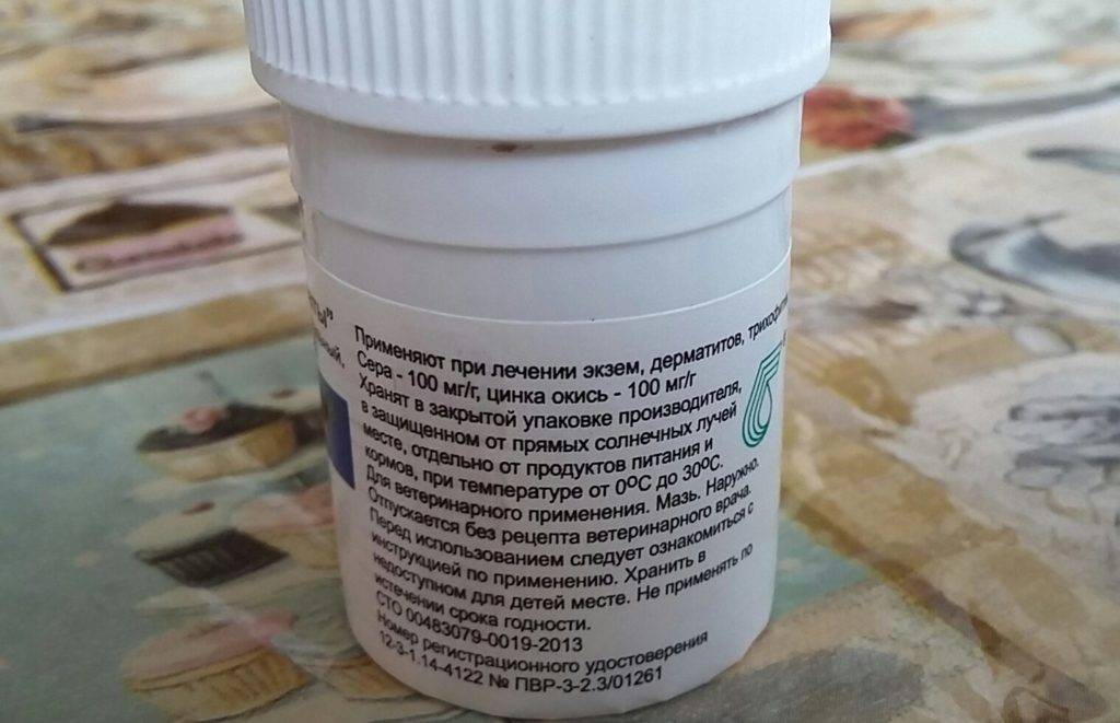 - Сера, основной и самый важный компонент из входящих в мазь, обладающий противовоспалительными свойствами. Заживляющее и обеззараживающее действие серы, способствует восстановительным процессам кожных и шерстяных покровов;