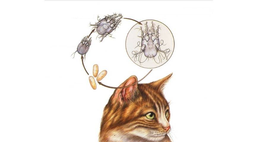 Ушной клещ относится к паразитам типа членистоногих. Выбирает в качестве носителя не только кошек, но и собак, лис, хорьков. Паразитирует на коже ушных раковин, а также в наружном слуховом канале. Имеет чешуйчатое тело овальной формы.