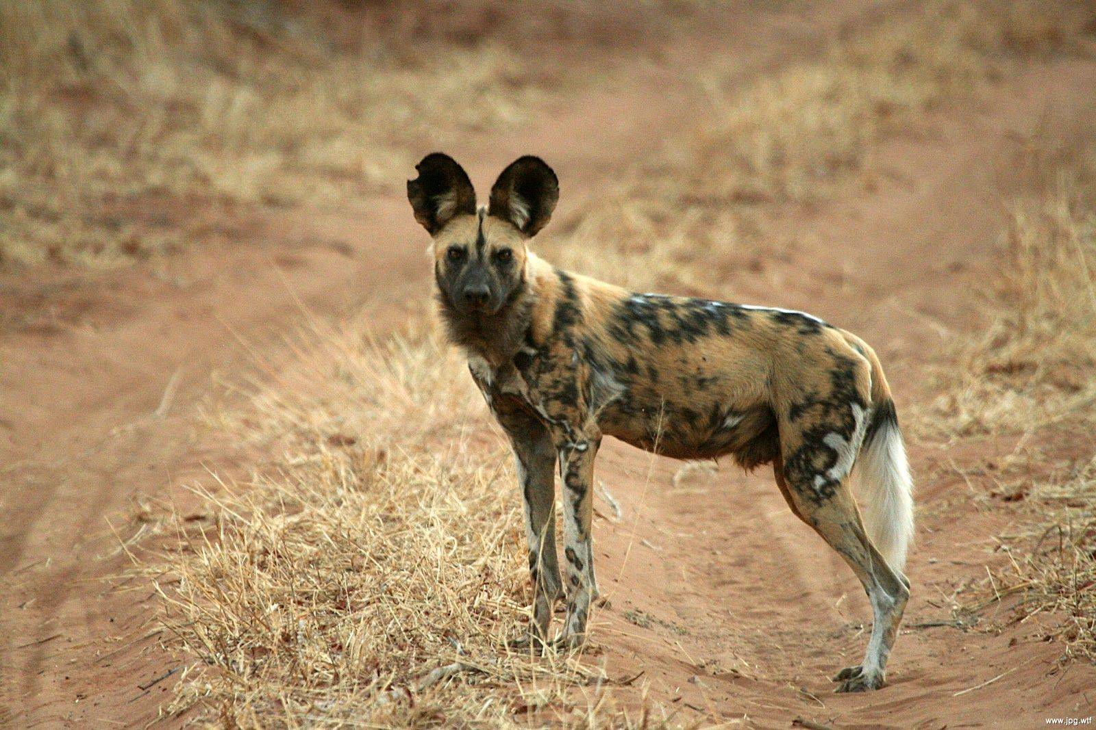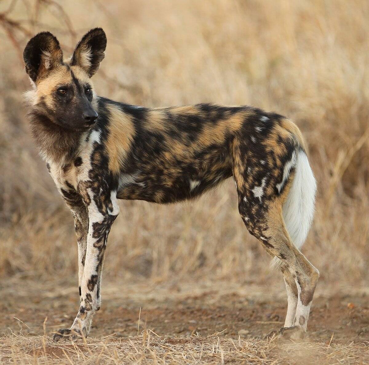 Лапы у животных сильные и длинные, с четырьмя пальцами. Благодаря такому строению псы способны развивать хорошую скорость. Шерсть у них короткая и жесткая, сочетает в себе черный, рыжий, белый оттенки. Пятнистый мех позволяет хищникам скрываться в траве, что обеспечивает удачную охоту. Кроме того, окрас сбивает добычу с толку, возникает ощущение того, что хищников гораздо больше.
