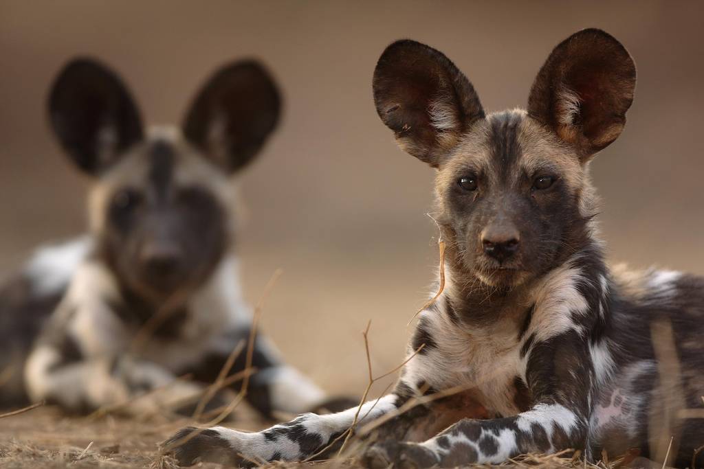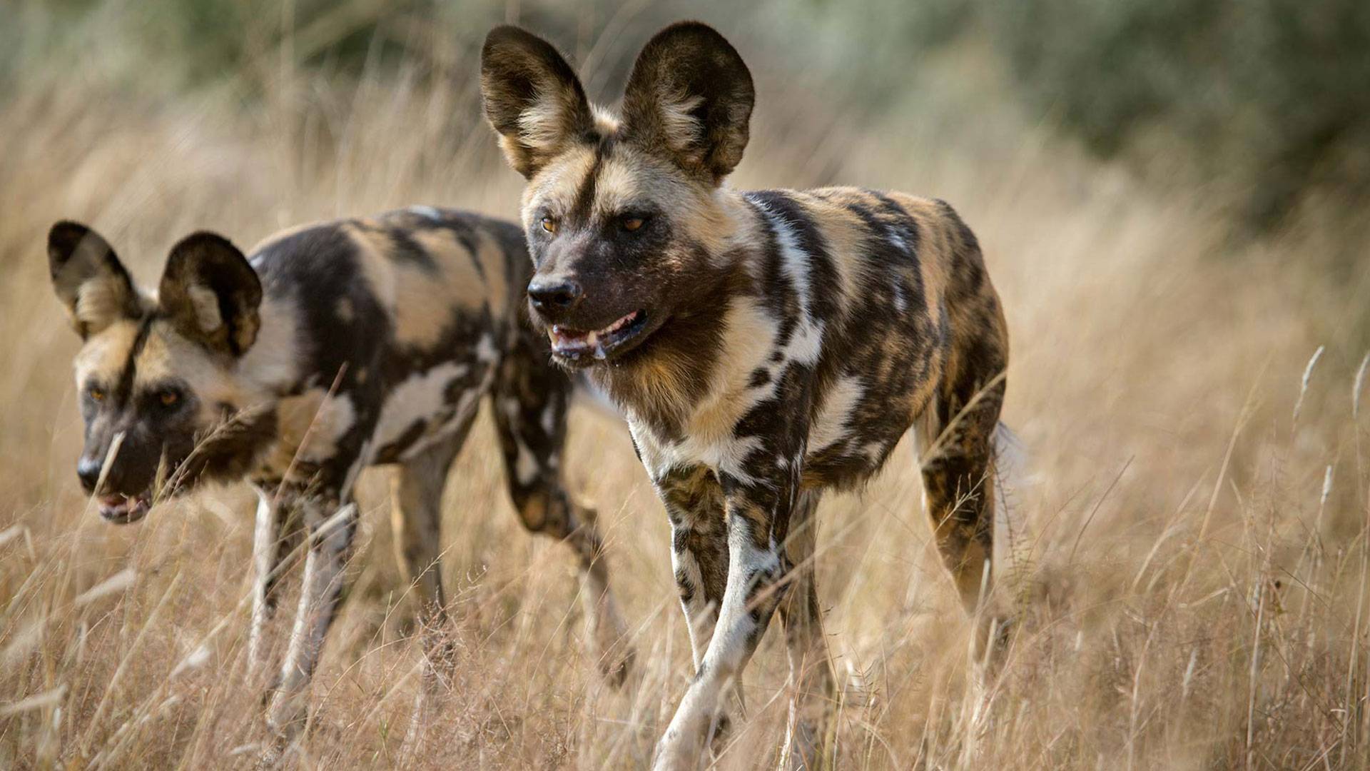 Благодаря такому строению псы способны развивать хорошую скорость. Шерсть у них короткая и жесткая, сочетает в себе черный, рыжий, белый оттенки. Пятнистый мех позволяет хищникам скрываться в траве, что обеспечивает удачную охоту. Кроме того, окрас сбивает добычу с толку, возникает ощущение того, что хищников гораздо больше