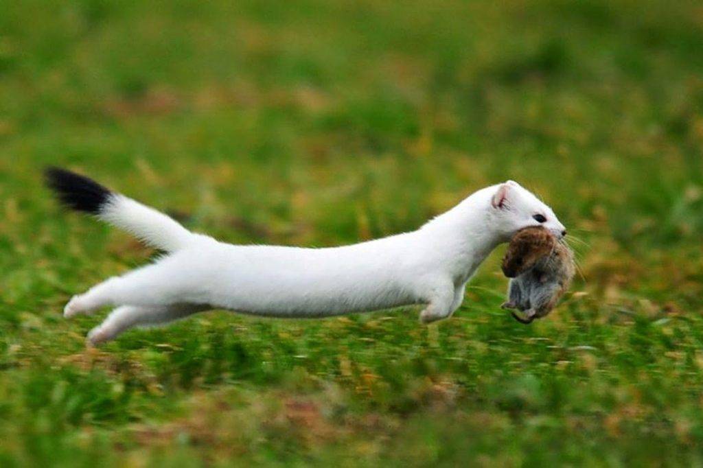 Горностай практически универсальный хищник. Он может преследовать добычу на земле, под землей, на деревьях, под снегом и водой.