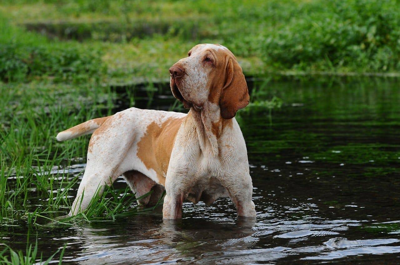 Легкие бело-оранжевые бракки родом из Пьемонта, которые применялись для охоты в горах.