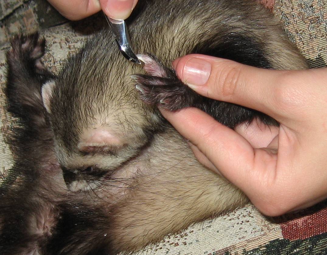 у хорьков не бывает слишком длинных коготок, но все-таки стоит внимательно следить за ними и проводить их стрижку;