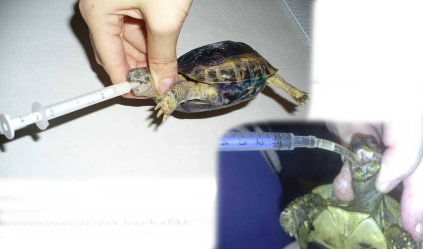 Технология кормления следующая: для начала нужно зафиксировать голову и открыть рот, после чего содержимое шприца следует выдавливать на язык. Дальше языка корм лучше не подавать, так как черепашка может подавиться или поперхнуться.