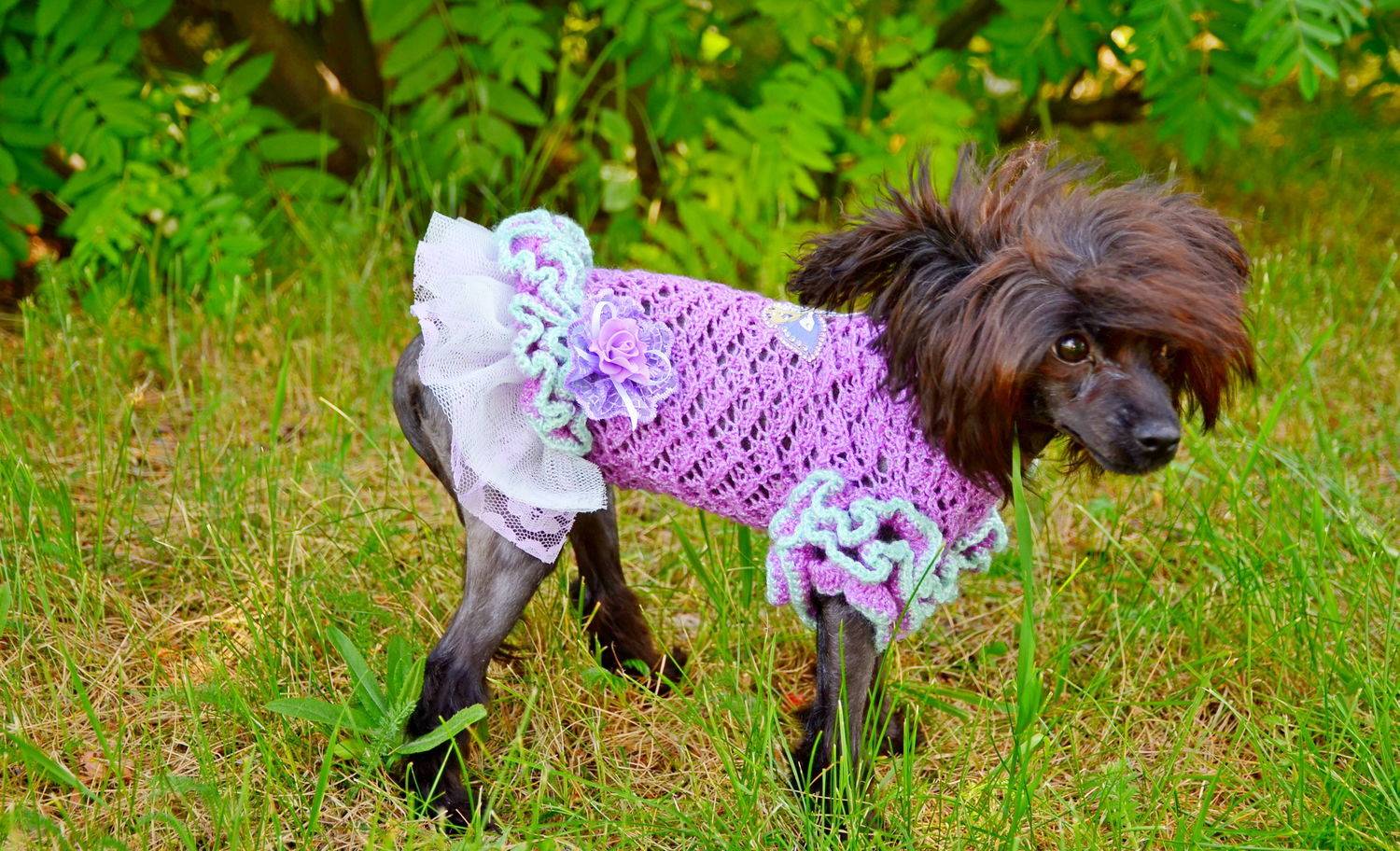 Одежда для собак, связанная крючком, лучше держит форму при плотной вязке. Ажурные узоры тепла дают мало, зато выглядят нарядно. Вязание собачьей одежды спицами дает более эластичные вещицы, но и более рыхлые. Существуют интересные схемы вязания, использующие рельефную вязку жгутами и косами.