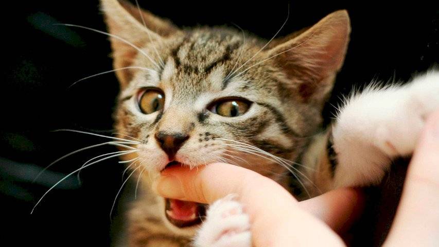Внимание котенка сосредоточено на игре, а не на причинении вреда владельцу. Котенок кусается небольно. Недовольство