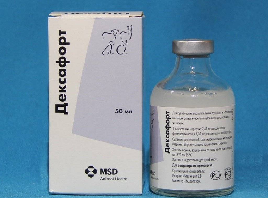 | Дексафорт | «Интервет» (Нидерланды) | Дексаметазона фенилпропионата и дексаметазона натрийфосфата | Суспензия для внутримышечного и подкожного введения | Стеклянные флаконы по 50 мл | Противопоказания: