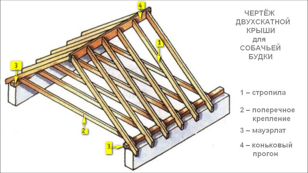 Отличие лишь в длине вертикальных брусков, соответствующих высоте конуры. На этот раз все они нарезаются одинаковой длины. Здесь не понадобится уклон, как в случае односкатной крыши.