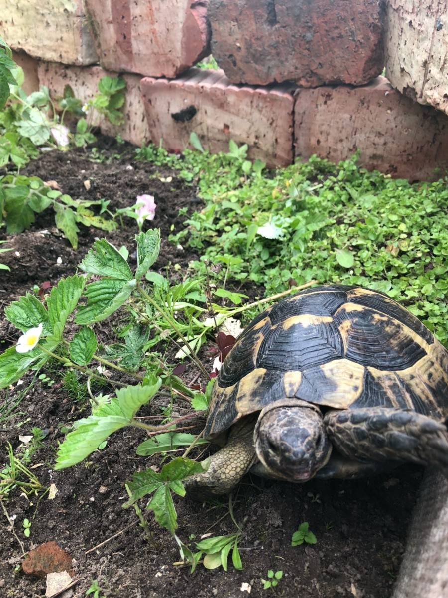 Многие делают специальные загоны на даче, где черепаха гуляет весь световой день.