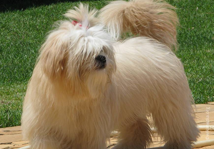 Стандарт породы принят в 1995 году. Рост собаки – 20-30 см в холке, вес – 4,5-7 кг. Шерсть белая, шелковистая, густая, покрывает все туловище и высоко посаженный лежащий на спине хвост. Покрытые шерстью уши висячие, а глаза темные и крайне выразительные. Эффектно выглядят черные нос, веки и губы.