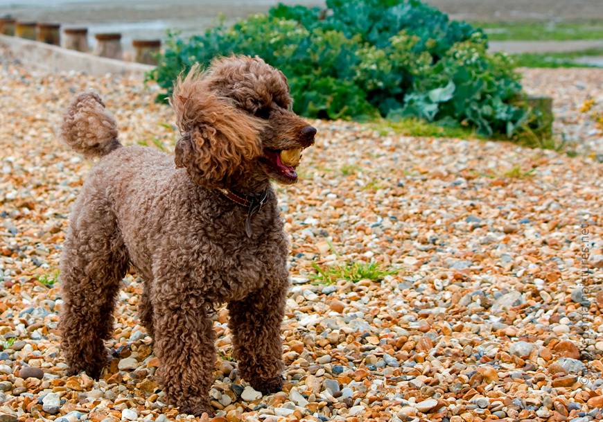 Французская болонка, пожалуй, одна из самых крупных бишонов. Их выводили в Италии, путем скрещивания мальтийских болонок и карликовых пуделей, от которых им досталась кудрявая шерстка. В шестнадцатом веке они приобрели популярность среди королевских особ, уже после того, как попали во Францию. Правильное название породы – Болоньез, что означает собачка из Болонии.