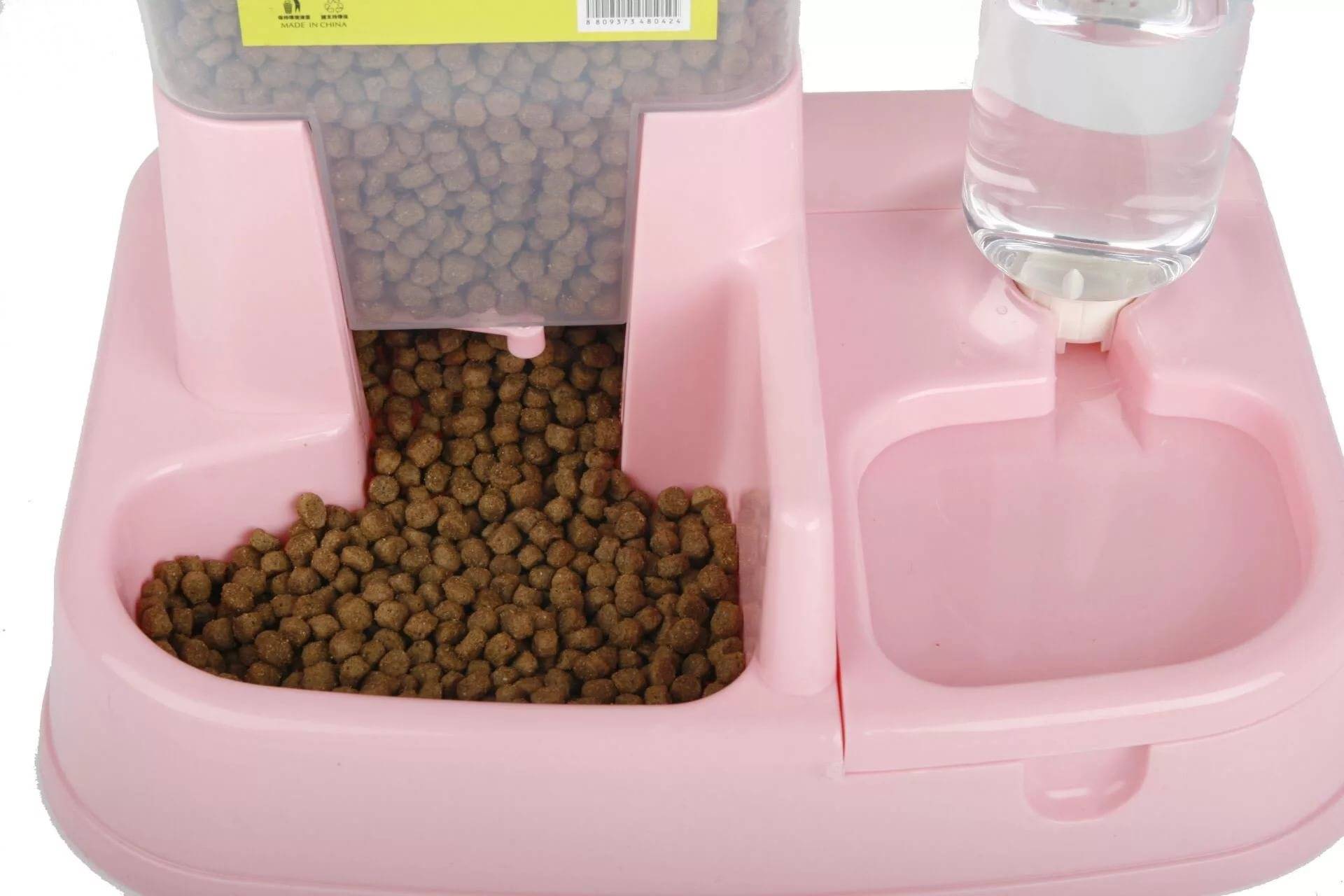 С дозатором: большой резервуар для корма, из которого высыпается еда по таймеру в заданном объеме, либо без таймера – по мере съедания животным корма в миске. Рассчитан такой тип, как правило, только на сухой корм, так как из-за влажных и липких кусочков еды может забиться дозатор или резервуар.
