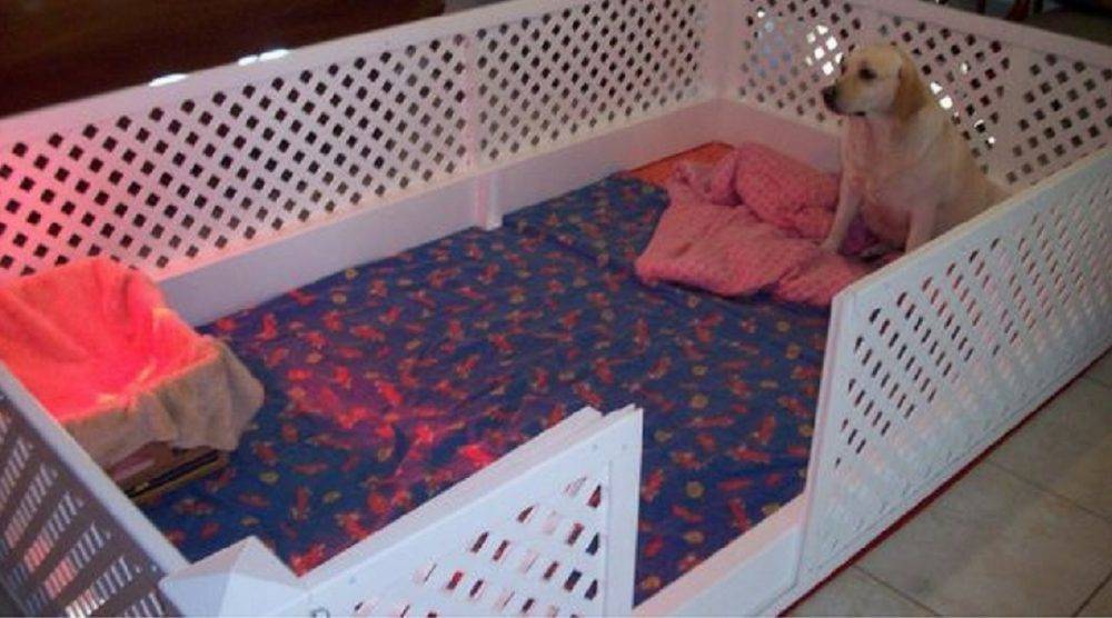 Манеж для собак должен быть изготовлен из прочного, безвредного материала, который животное не сможет прогрызть или сломать, а также комфортным и эстетичным.