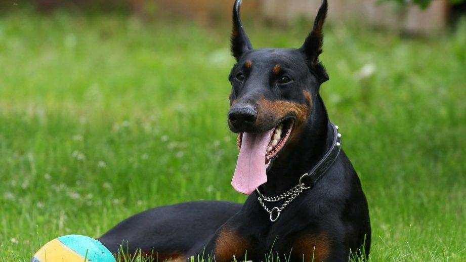 Собака породы доберман