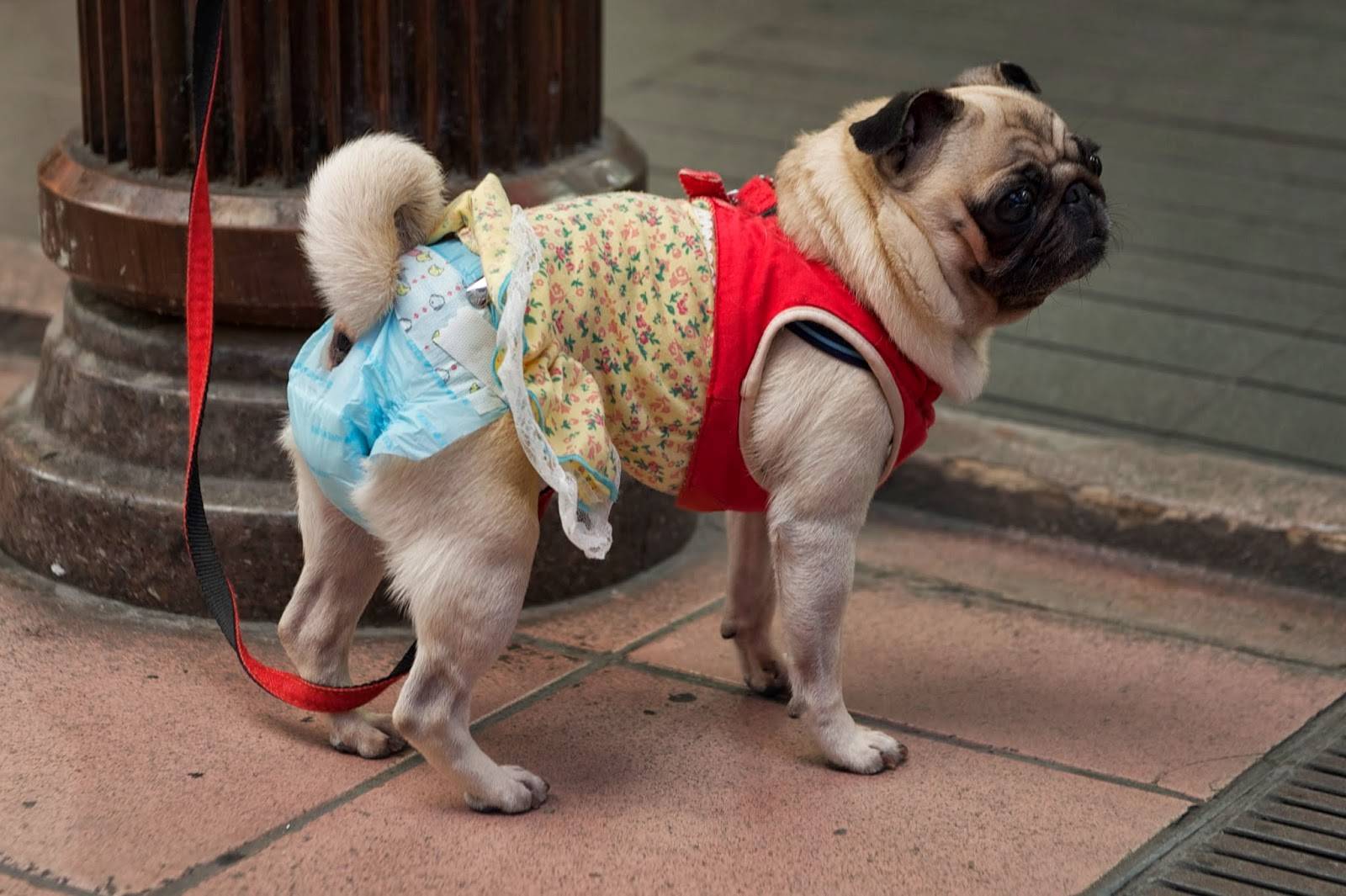 Надеть памперсы собаке – идеальное решение многих проблем. Не нужно будет постоянно убирать за питомцем во время болезни или в дороге. Даже ужасная метель на улице может быть лишь картинкой за окном, если в доме есть памперсы. Для удобства ношения можно одеть пса в костюмчик или комбинезон поверх подгузника.