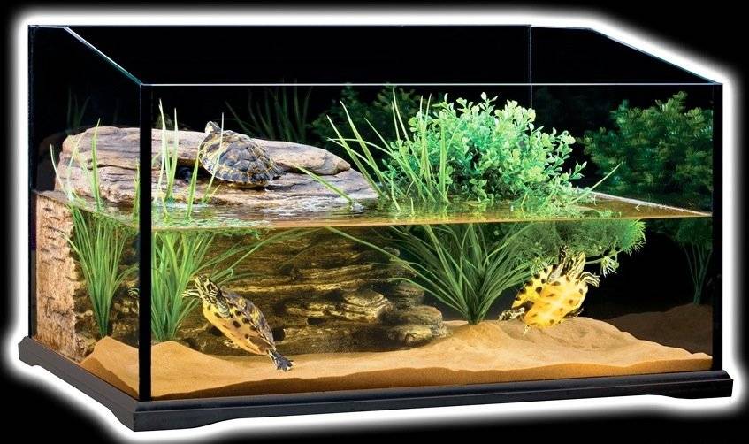Заводить красноухую черепаху в домашних условиях следует лишь поле того, как тщательно организуете место её постоянного пребывания – аквариум. Не стоит думать, что маленькая красноухая черепаха требует небольшой аквариум, и по мере её роста, его можно будет заменить на аквариум с большим объёмом. Лучше сразу купить большой – не менее 150 литров – чтобы избежать стресса у животного в связи с такими «переездами».