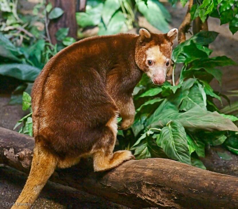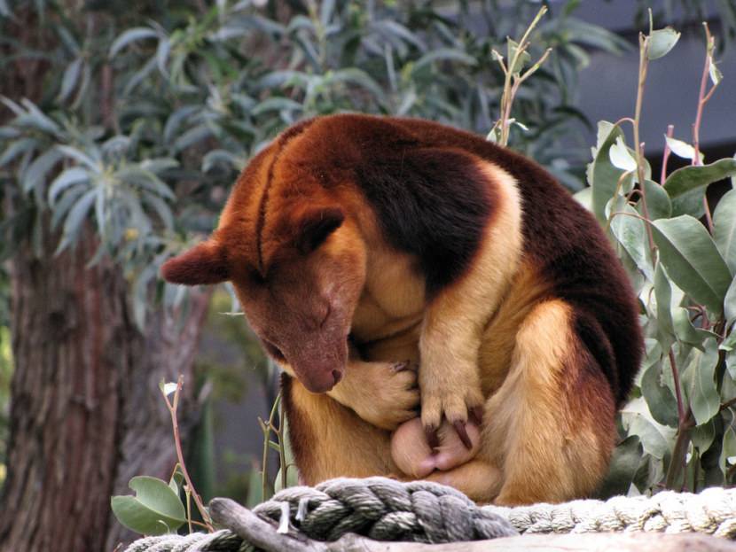 - Отдельно стоит сказать о хвосте квокки, потому что это отличительная черта вида. У взрослой особи он составляет всего 25 -30 см. Выполняет роль опоры для животного.