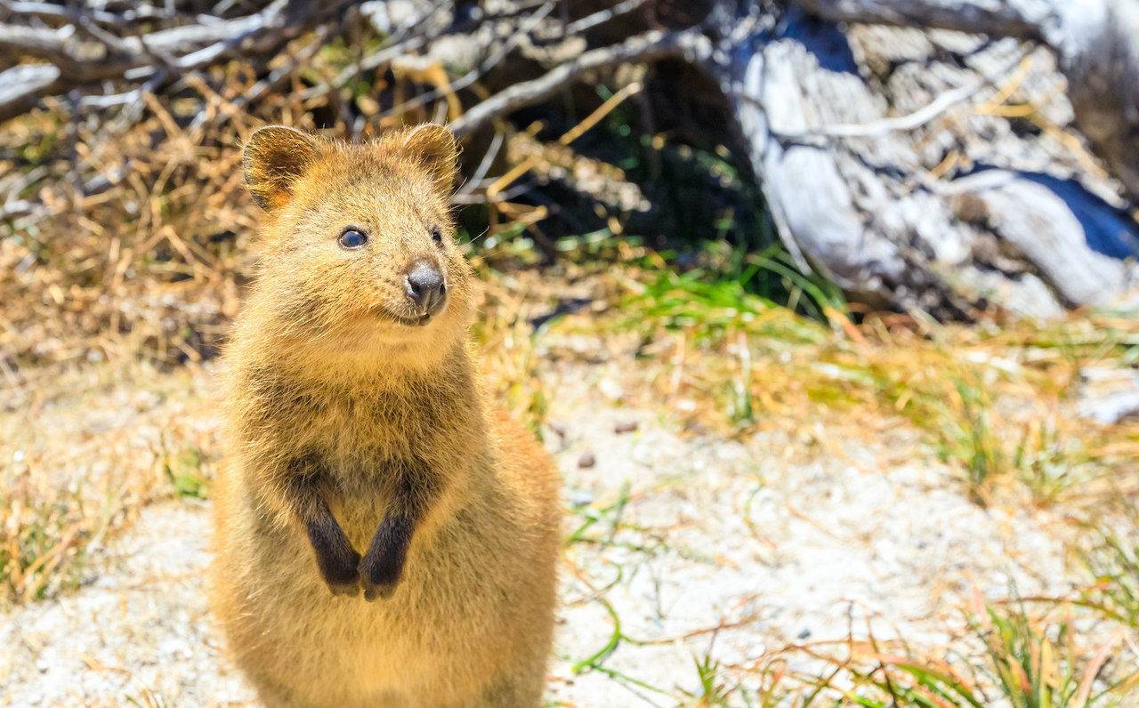 Короткохвостый кенгуру, которого называют квокка, на первый взгляд напоминает валлаби или кенгуру, но его хвост довольно короткий. По размеру зверек сравним с крупной домашней кошкой или средней собакой. Длина тела – около 50 см, вес не превышает 5 кг. Зверек травояден, особенно активен в ночное время. Это животное совершенно беззащитно перед хищниками, поэтому сохранилось лишь на небольших островах Роттнест, Балд, Пингвин и нескольких континентальных участках Западной Австралии, где не водятся лисы и кошки. Предпочитает селиться в сухих травянистых районах, которые густо поросли кустарником. Во время засухи его можно встретить на болотах.