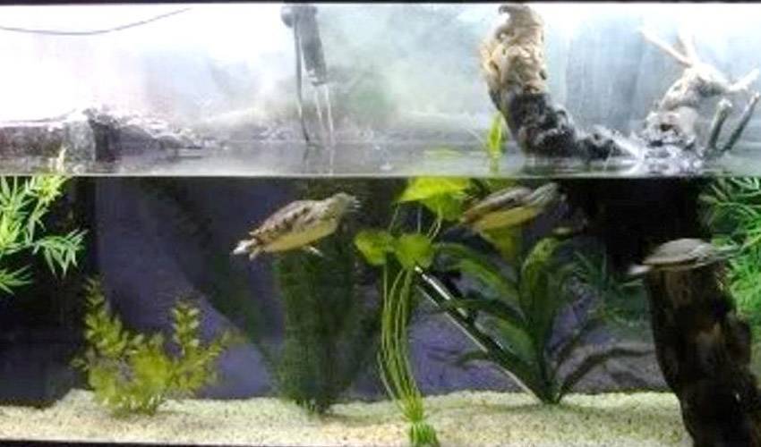 Для аквариума необходим фильтр для очистки воды и ультрафиолетовая лампа. Без ультрафиолета черепахи плохо усваивают кальций. Дно аквариума выкладывают галькой или крупным грунтом. Рептилия обязательно попробует грунт зубами, поэтому размеры гальки должны быть больше, чем голова черепахи. При покупке выясните, к какой она относится породе. От этого зависит температурный режим воды в аквариуме.