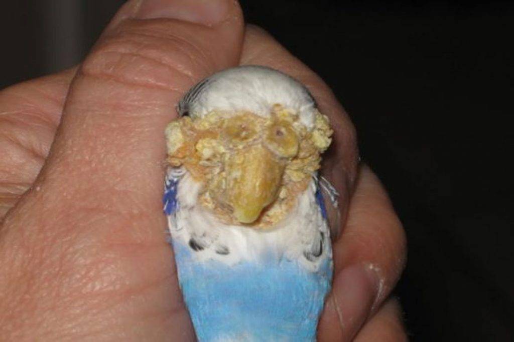 Там может возникнуть корка, растущая вокруг глаз или клюва. Это часто бывает, когда вы увидите лицевых клещей. Эти клещи копаются в коже птиц, как будто создают туннели.