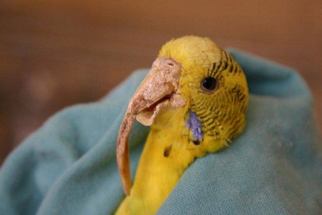 - При помощи лупы осматривают клюв и область вокруг него. Если кожа и костные ткани деформированы, появились наросты в уголках клюва, а сам он вывернут или повернут в сторону – это симптомы поражения.