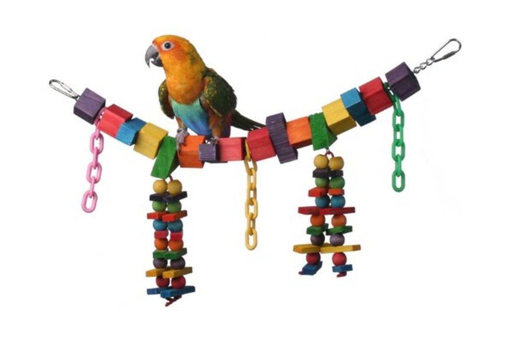 Многие хозяева птиц любят баловать своих питомцев стимулирующими игрушками, чтобы разнообразить жизнь птицы и получить удовольствие от наблюдения за попугаем, которые чаще всего не обделены интеллектом. Игрушки изготавливаются из самых разнообразных материалов: дерево, акрил, нержавеющая сталь, нейлон, поливинилхлорид, хлопок и сизаль, ткань, резина, бумага, дубленая кожа, шелуха, высушенные пальмовые листья и другие органические материалы. Могут быть представлены разными формами: колокольчики, бусы, кольца, скорлупа кокоса. Самые разнообразные формы, цвета, комбинации материалов.