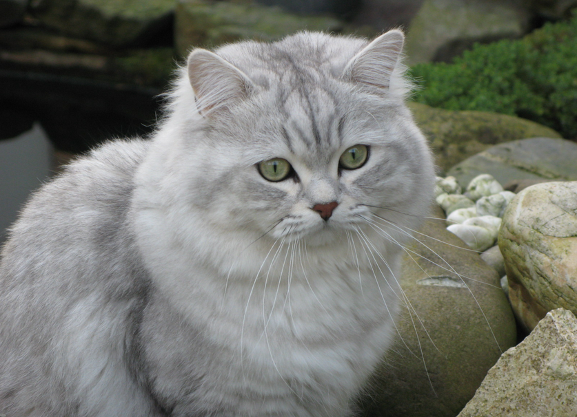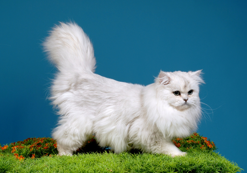 Британская длинношерстная кошка шиншилла. Окрас «шиншилла», бесспорно, очень красивый, а секрет таких переливов в том, что большинство остевых волосков имеют темные кончики.