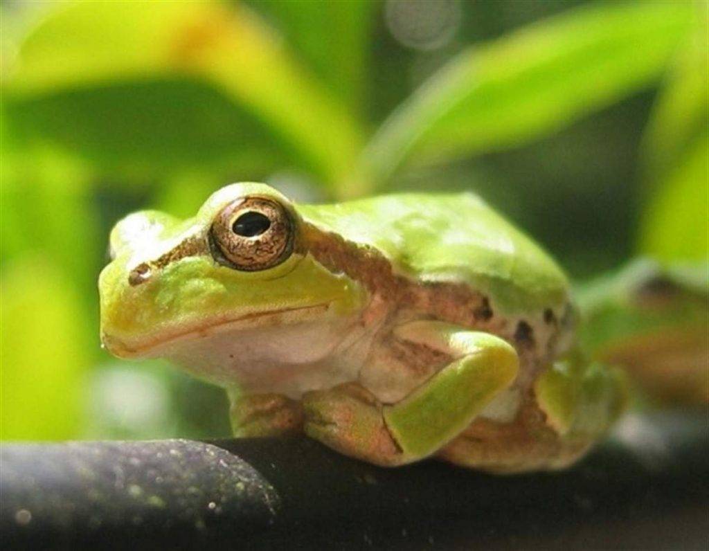 Она поселится в любом водоеме, где есть пища и кувшинки, на которых можно посидеть, высматривая мошек. Замер телосложения – 10 см. Зеленовато-желтая кожа прудовой лягушки покрыта коричневыми пятнами. По центру её спины проходит узкая полоска. Необычной видовой чертой является хорошее развитие барабанных перепонок.