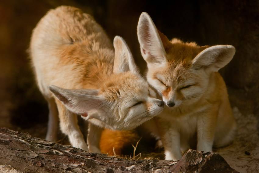 Это, как правило, родители, маленькие детёныши и подростки из предыдущих помётов. Фенеки очень социальны и для переговоров используют язык тела и множество звуков, передающих эмоции: лай, ворчание, вой, скулёж и т.д.