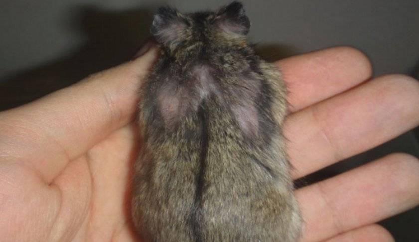Основной признак розового лишая — бесшерстные участки кожи розового цвета. Они сильно зудят, и хомяк пытается их постоянно чесать. Центр пятна более бледного цвета, чем его края.