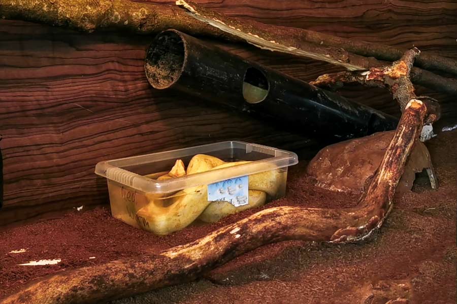В нем устанавливаются бассейн для купания и коряги для лазания. Они в диаметре должны быть толще змеи.