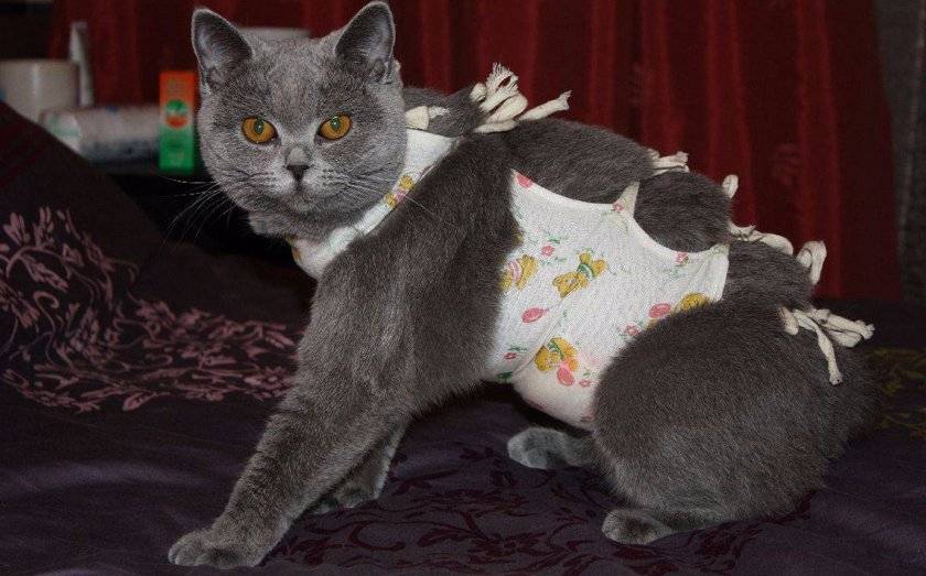 Независимо от выбранного материала необходимо обеспечить защиту изделия от попадания на него сукровицы. Под попону подкладывают несколько ежедневных обычных прокладок без ароматизаторов. Периодически их заменяют новыми. Каждый день необходимо снимать бандаж, позволяя кошке принимать воздушные ванны.