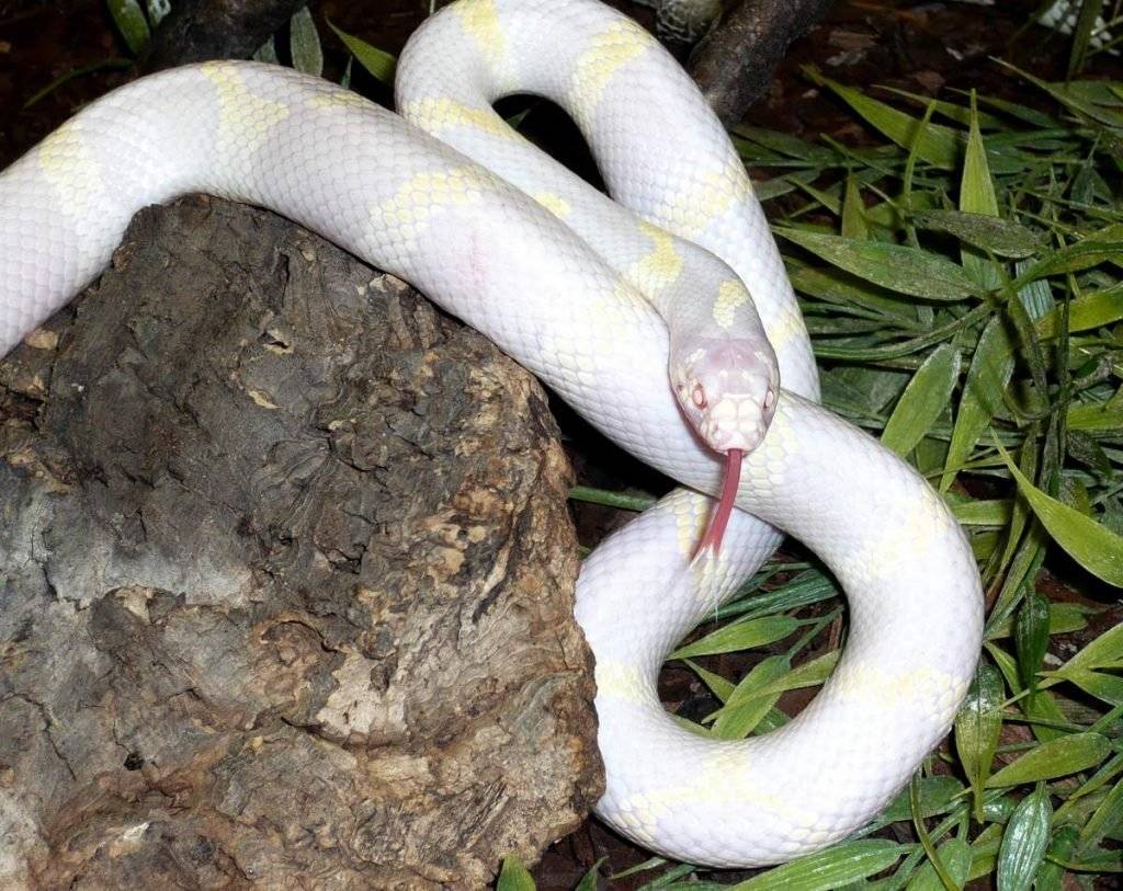 Калифорнийская королевская змея-альбинос.