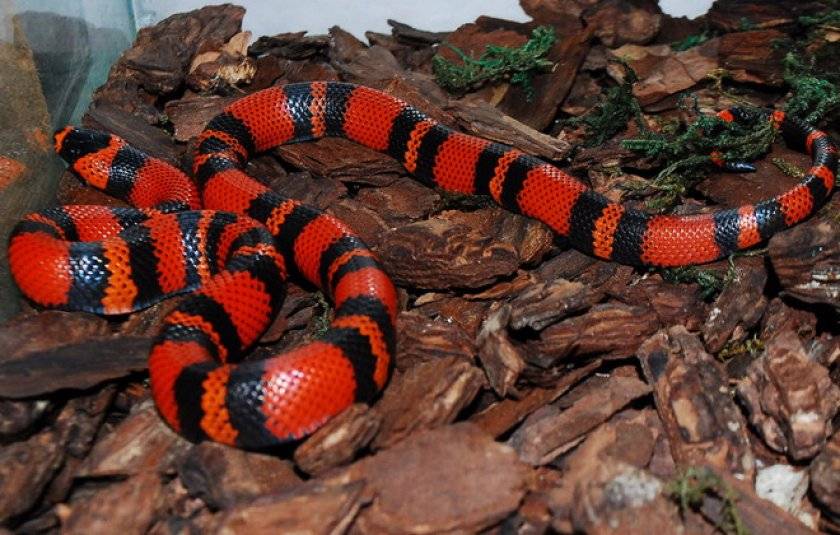Самые нарядны среди молочных змей — представители подвида L.t.cambelliс контрастным черно-красно-белым окрасом и представители подвида L.t.sinaloae с широкими алыми поперченными кольцами.