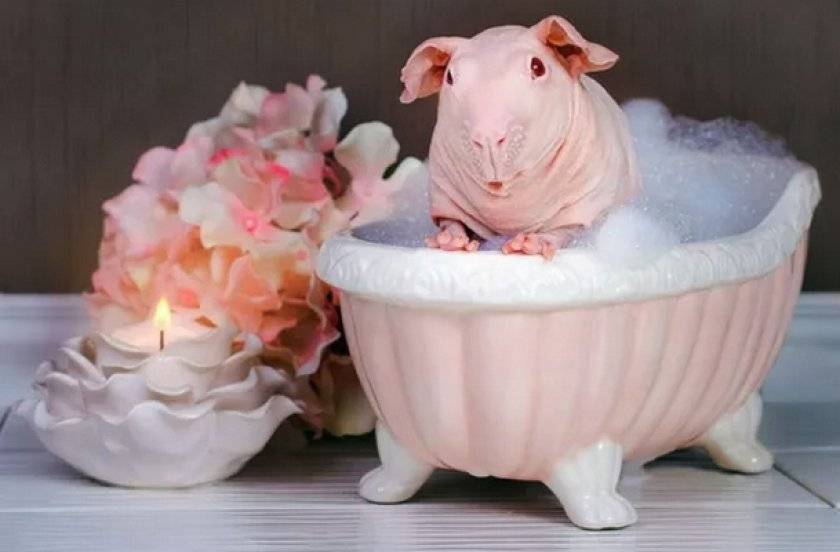Бесшёрстные морские свинки, например, породы Болдуин, нуждаются в частых водных процедурах. Однако таких питомцев необходимо хорошенько высушить, и они требуют особого ухода. Такой питомец отличается покладистым характером и своей чистоплотностью.