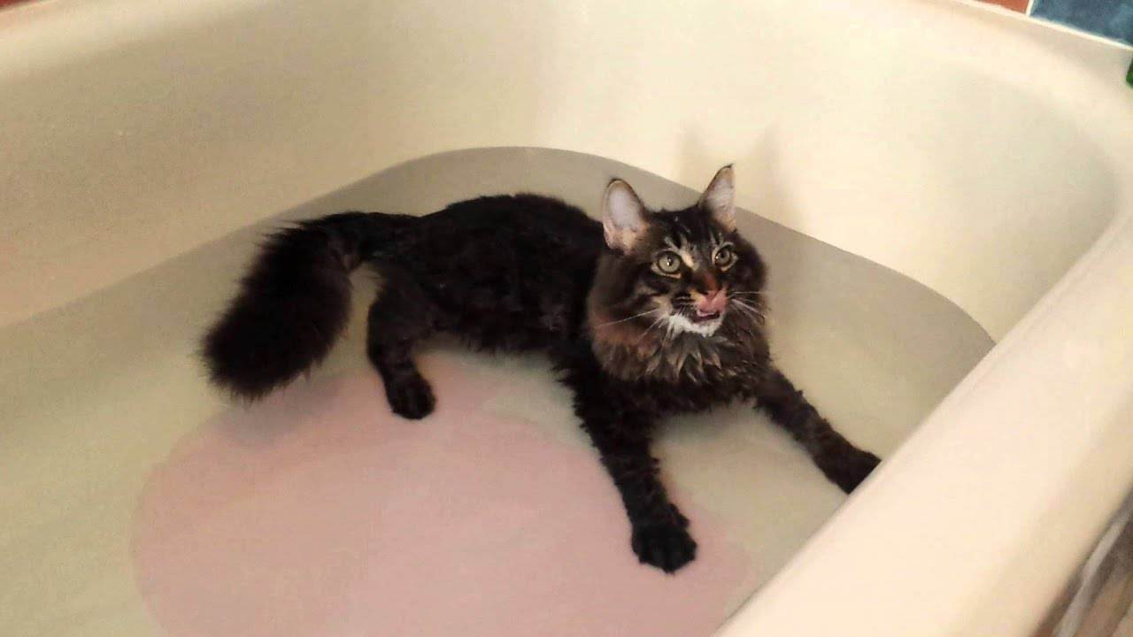 Нельзя использовать обычное мыло или шампуни для людей. Купать кунов часто не стоит, оптимально – раз в два месяца. Периодичность может быть иной в зависимости от степени загрязнения. Если кошка гуляет по улице, мыть ее нужно гораздо чаще – раз в неделю.