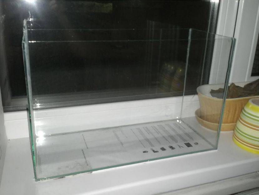 Для склеивания деталей конструкции лучше всего подойдет силиконовый герметик. Он не принесет вреда ни рыбам, ни растениям, в отличие от акриловых, бутиловых, кислотных, битумных клеевых составов. Чтобы склеить заготовки, по периметру днища требуется нанести силиконовый герметик каплями, оставляя маячки для последующего заполнения. Далее нужно подождать около двух часов и срезать застывший герметик так, чтобы остался слой толщиною до двух миллиметров.