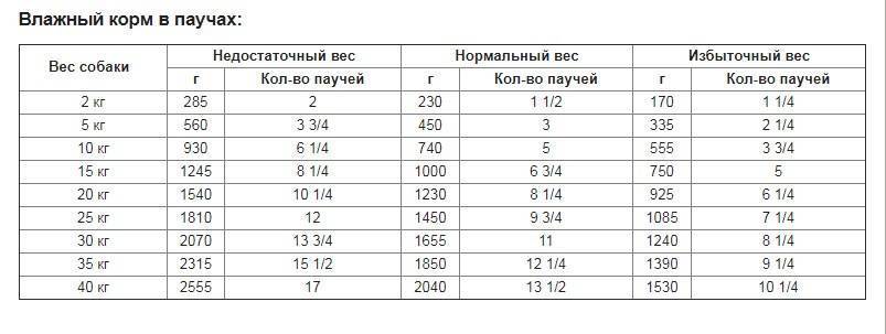 Энергетическая ценность продукта для щенков разных пород зависит от их размеров. Связано это с особенностями физиологии. Маленькие разновидности быстрее достигают зрелости, при этом крупные виды раньше стареют. Таблица поможет определиться с рационом, необходимым вашему питомцу.