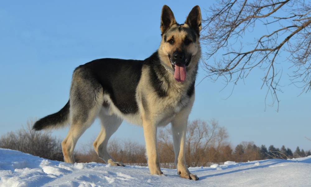 - Немецкая овчарка. Можно содержать на привязи, но лучше в вольере.