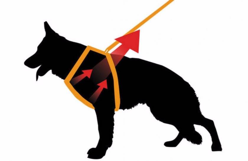 Выглядит это устройство довольно просто: матерчатые или кожаные ремни, пущенные через грудь и по телу (снизу корпуса или по спине), соединены в районе передних лап и хребта.
