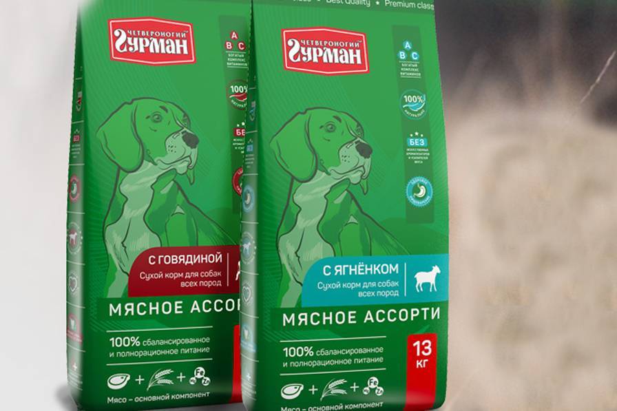 Сухой корм марки «Четвероногий гурман» уступает по составу консервам одноименного производства